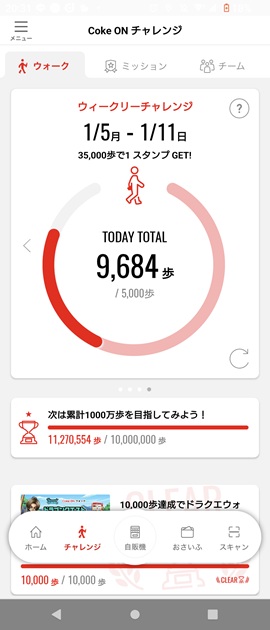 今日は1万歩には届かなかったものの、9,684歩ほど歩くことができた。